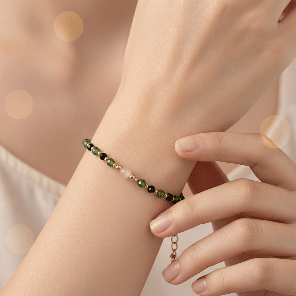 Diopsyd – połyskliwy i wyrazisty kamień półszlachetny, występujący w wielu odmianach i kolorach. Najczęściej występująca odmiana to “diopsyd chromowy” w kolorze intensywnej butelkowej zieleni lub intensywnego koloru oliwkowego. Diopsyd chromowy swój charakterystyczny zielony kolor zawdzięcza zawartości chromu. Inne odmiany diopsydu występują w kolorach od bezbarwnego, brunatnozielonego, aż po fioletowo-niebieski, czy nawet prawie czarny. Wybarwienie zależne jest od zawartości żelaza i magnezu. Kamienie zawierające więcej żelaza są ciemniejsze. Niektóre kamienie diopsyd charakteryzują się efektem kociego oka lub asteryzmem, a czasami też właściwościami luminescencyjnymi w kolorze pomarańczowym, jasnozielonym lub jasnoczerwonym. Niektórzy uważają, że diopsyd chroni przed chorobami i wzmacnia siły życiowe, działa relaksująco, wspomaga usuwanie stresu i stanów napięcia, pomaga przezwyciężyć stany depresyjne i sprzyja głębokiemu odprężeniu, polecany jest dla osób prowadzących badania naukowe, szczególnie w dziedzinach związanych z matematyką.