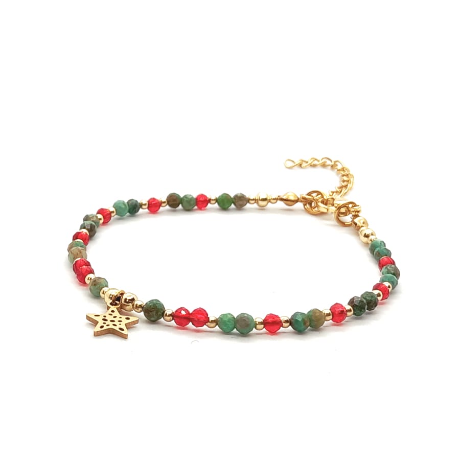 Bransoletka z gwiazdką Turkus, Spinel – kamienie naturalne 16,5-20,5cm KAM1277 stal chirurgiczna pozłacana