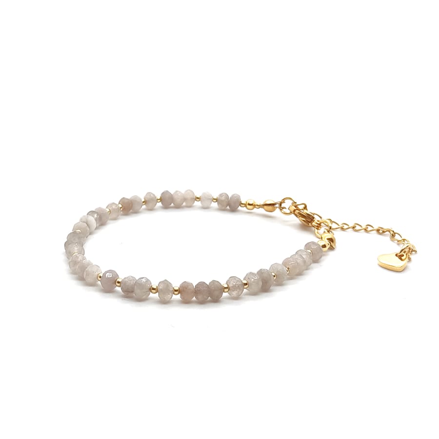Bransoletka z serduszkiem – kamienie Jadeit. Bransoletka wykonana ręcznie, na jubilerskiej lince stalowej – obwód wewnętrzny: 16,5cm (+4cm łańcuszek regulacyjny z zawieszką w kształcie serduszka, zapięcie typu karabińczyk ze stali chirurgicznej. Jadeit fasetowany szary oponka o średnicy 3mm. Dodatki ze stali chirurgicznej. Elegancka bransoletka z kamieni naturalnych stanowi gustowną, oryginalna ozdobę nadgarstka. Bransoletka z kamieni naturalnych wykonana ręcznie w Polsce – Bransoletki Made in Poland.